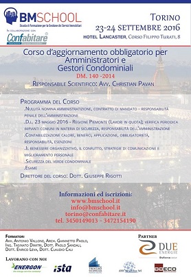 CorsiIl 23 e 24 ottobre, si terrà a Torino, un corso di aggiornamento obbligatorio per legge, per amministratori condominiali. Sarà l’occasione, ancora una volta, di parlare con questi professionisti di comunicazione efficace e di allenarli ad utilizzare adeguatamente strumenti comunicativi idonei a prevenire e risolvere la conflittualità nei condomini.
