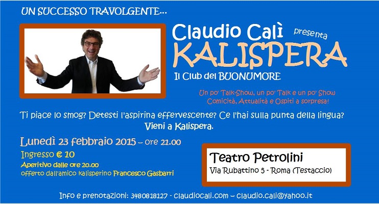 EventiLunedì 23 febbraio, puntuale ed implacabile, torna Kalispera con una nuova serata all’insegna del buonumore.